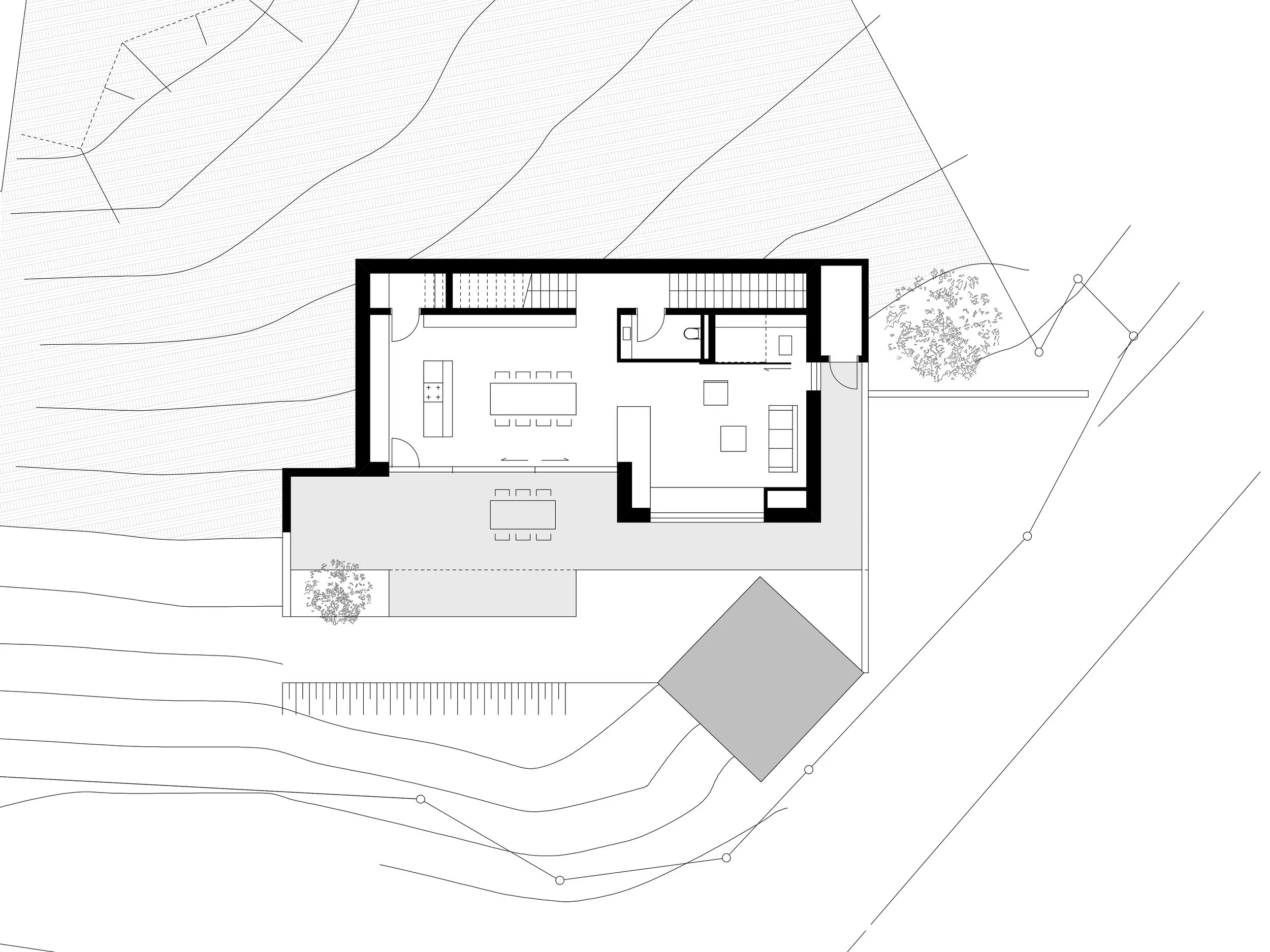 Entwurf für ein Einfamilienhaus für eine junge Familie in steiler Hanglage mit Blick auf den Zellersee